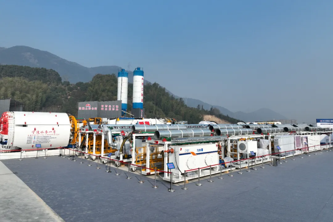 作為省、市重點(diǎn)工程建設(shè)項(xiàng)目,寧波市水庫群東西線聯(lián)通工程位于寧波市奉化區(qū)南部山區(qū),工程設(shè)計輸水規(guī)模為40萬m³/d。建設(shè)內(nèi)容包括一條干線、兩條支線,以及沿線調(diào)節(jié)站及各類閥井,全線總長約40.54km。6#隧洞作為本工程重要節(jié)點(diǎn)性分部工程,全長約12.28km,采用鉆爆法+TBM(全斷面硬巖掘進(jìn)機(jī))進(jìn)行隧洞開挖。值得一提的是,本次所采用的敞開式TBM設(shè)備“寧波水務(wù)一號”,其開挖直徑4.03米,整機(jī)長度約225米,掘進(jìn)長度10.87km,為寧波水利行業(yè)首次應(yīng)用。