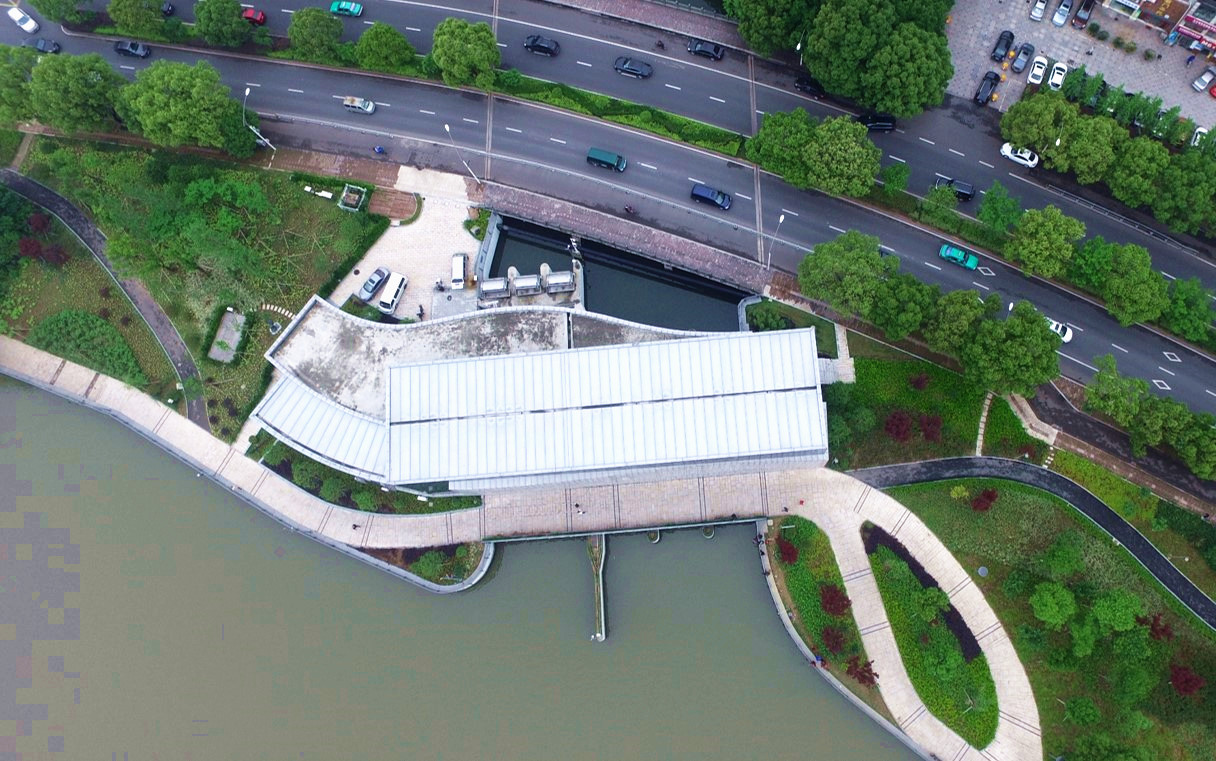 保豐碶閘站位于現(xiàn)有濱江公園范圍內(nèi),通過合理的建筑布置與現(xiàn)代的建筑設(shè)計(jì),將水利廠房與周邊的景觀進(jìn)行了有機(jī)結(jié)合,同時(shí)考慮到本工程的悠久文化底蘊(yùn),于泵站內(nèi)設(shè)置了文化長廊,建成以后成為了寧波水利的一個(gè)重要對外窗口。