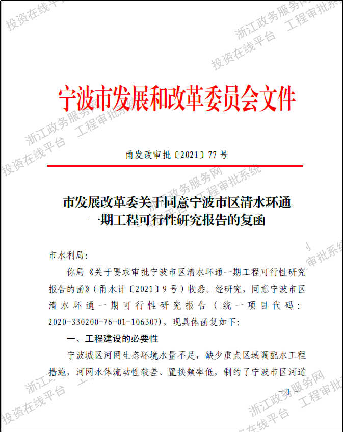 寧波市區(qū)清水環(huán)通一期工程西起機場高架、東至福慶路,北起北環(huán)高架,南至鄞州大道,面積合計約146km2,是寧波市區(qū)重要的河網(wǎng)引配水工程,亦是緩解老城內(nèi)澇壓力的有力舉措。為提升河網(wǎng)環(huán)境用水量、促進水系互聯(lián)互通、改善水體流態(tài),寧波市區(qū)清水環(huán)通一期工程創(chuàng)新性的引入“精準(zhǔn)補水、高速水路”的計理念,切實解決了寧波城區(qū)現(xiàn)狀大水漫灌的河網(wǎng)調(diào)水模式下調(diào)水效率低下、補水針對性不強等痛點、難點問題。該工程可研報告于2021年5月獲寧波市發(fā)展和改革委員會批復(fù)。