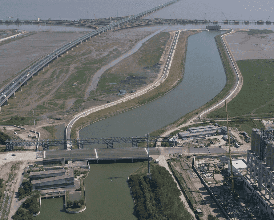 本工程位于寧波市鎮(zhèn)海區(qū)東部,新泓口河下游,現(xiàn)新泓口水閘外海側,金塘大橋橋下。結合排澇閘外移及兩側防護堤的建設,將有利于該海域加快灘涂淤漲,以部分恢復錢塘江河口南岸的淺海潮灘濕地;隨著灘涂淤漲有利于該海域增加海洋生物總量,有利于生物多樣性的恢復及生態(tài)環(huán)境的改善。