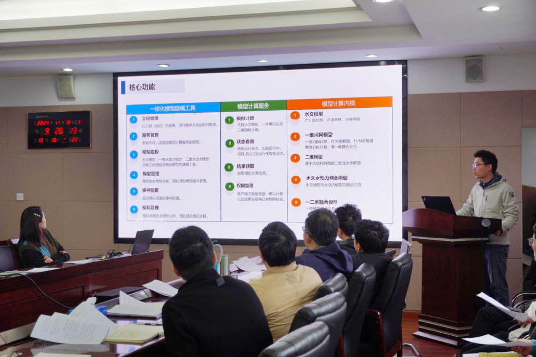 介紹結(jié)束后,參會人員針對該平臺的核心功能和實操應(yīng)用進行熱烈交流。大家一致認(rèn)為,該平臺是目前我院自主研發(fā)的通用化、模塊化、精細化的水文水動力數(shù)學(xué)模型及配套分析工具的集大成者,能夠?qū)崿F(xiàn)對流域水情的實時模擬和精準(zhǔn)預(yù)測,能夠為防洪調(diào)度、水資源管理等水利治理管理工作提供兼具前瞻性、科學(xué)性、精準(zhǔn)性、安全性的決策支撐。